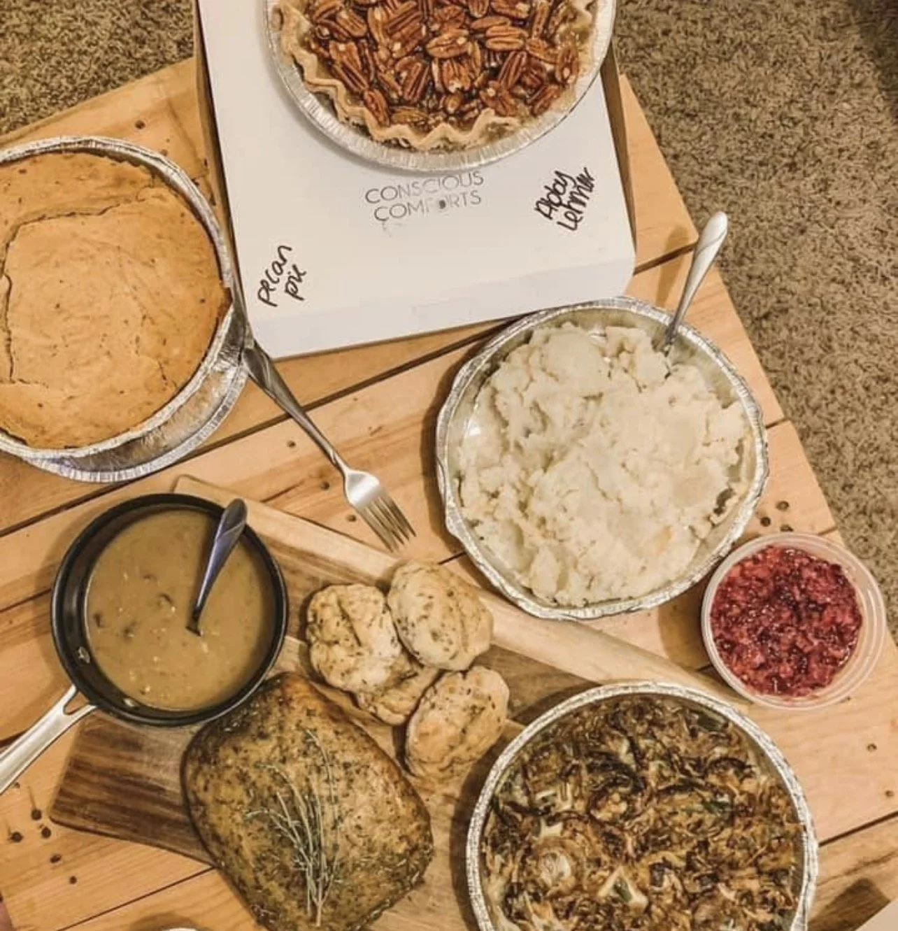 Categories: Select a Category Upcoming Events Preorder Ala Carte Breakfast Savory Sweets Shop Upcoming Events Preorder | Ala Carte | Breakfast | Savory | Sweets | THANKSGIVING 2025 ALA CARTE MENU from $14.00 THANKSGIVING 2025 MEAL DEAL from $5.00 THANKSGIVING 2025 INDIVIDUAL PLATES $35.00 SEEDED BREAD from $7.00 TAKE AND BAKE ROLLS from $19.00 THANKSGIVING 2025 PIES/DESSERTS from $26.00 GF Breakfast Burritos from $12.00 GF Breakfast Sandwiches from $12.00 GF Oreo Balls from $27.00 GF Sugar Cookie Truffles from $27.00 GF Cheesy Corn Mac $25.00 WFPB Raw Berry Cheesecake from $48.00 GF Chocolate Almond Blondies from $30.00 GF + Sugar Free Donuts from $30.00 GF Brownies from $33.00 GF Peanut Butter Crunch Balls from $27.00 Caramel Pecan Rolls from $26.00 Cinnamon Rolls from $19.00 Fruit Crumble Cinnamon Rolls from $22.00 Chai Rolls from $19.00 Cake Donuts from $24.00 GF Pop Tarts from $33.00 Hummus $11.00 Dill Pickle Potato Salad $17.00 Conscious Comforts Dips $17.00 Gluten Free Baguettes (4) $18.00 Gluten Free Hamburger Buns (6) $18.00 Biscuits and Gravy from $33.00 Quiche from $30.00 Nunzas from $28.00
